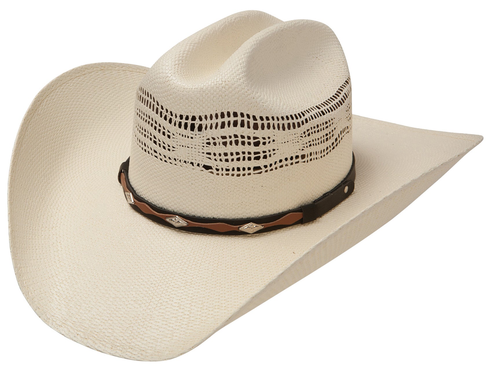 This straw hat will keep you nice and cool on a hot day with the bangora style venting in the crown. The 7X straw is nice quality and looks sharp with a black hatband that features a brown inlay and diamond conchos.