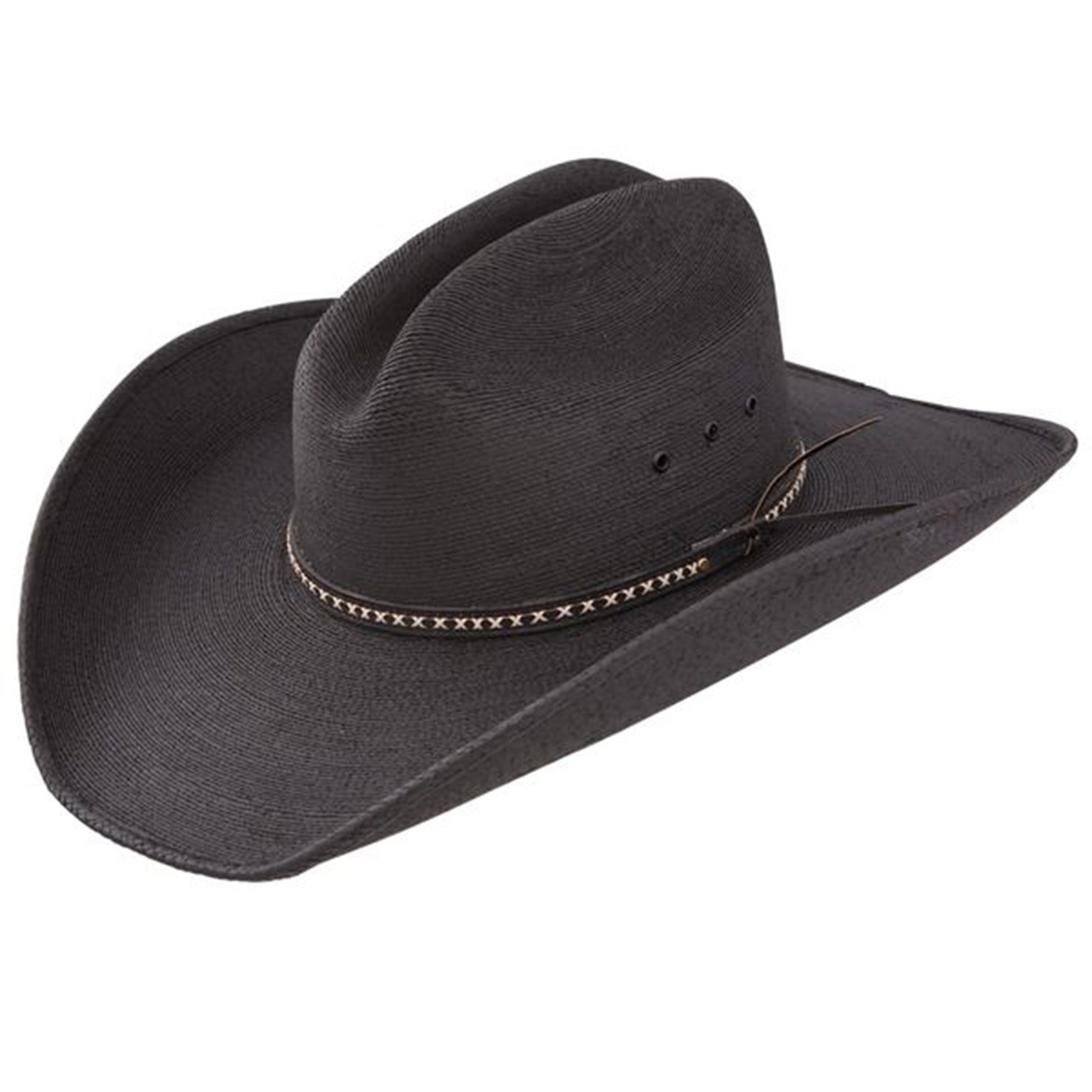 Now you can show off your country rocker side with this Asphalt Cowboy Palm Hat from Jason Aldean by Resistol! Made with black 100% genuine Mexican palm leaf straw, this hat features a detailed leather hat band for a stylish look.