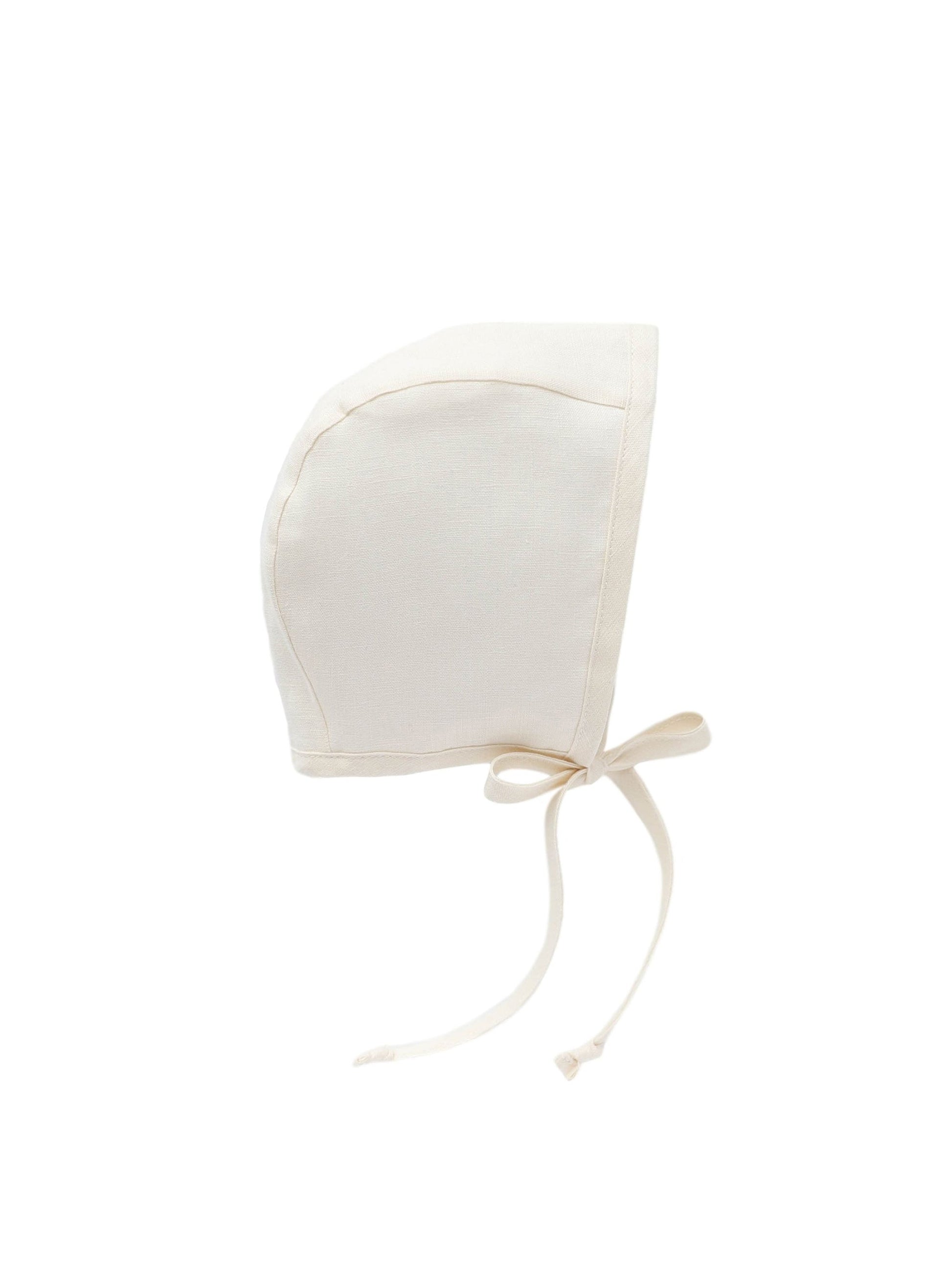The perfect newborn head covering, this Briar Baby ivory linen bonnet is soft, moisture absorbent, and anti-allergenic--no wonder it is called the fabric of royalty.