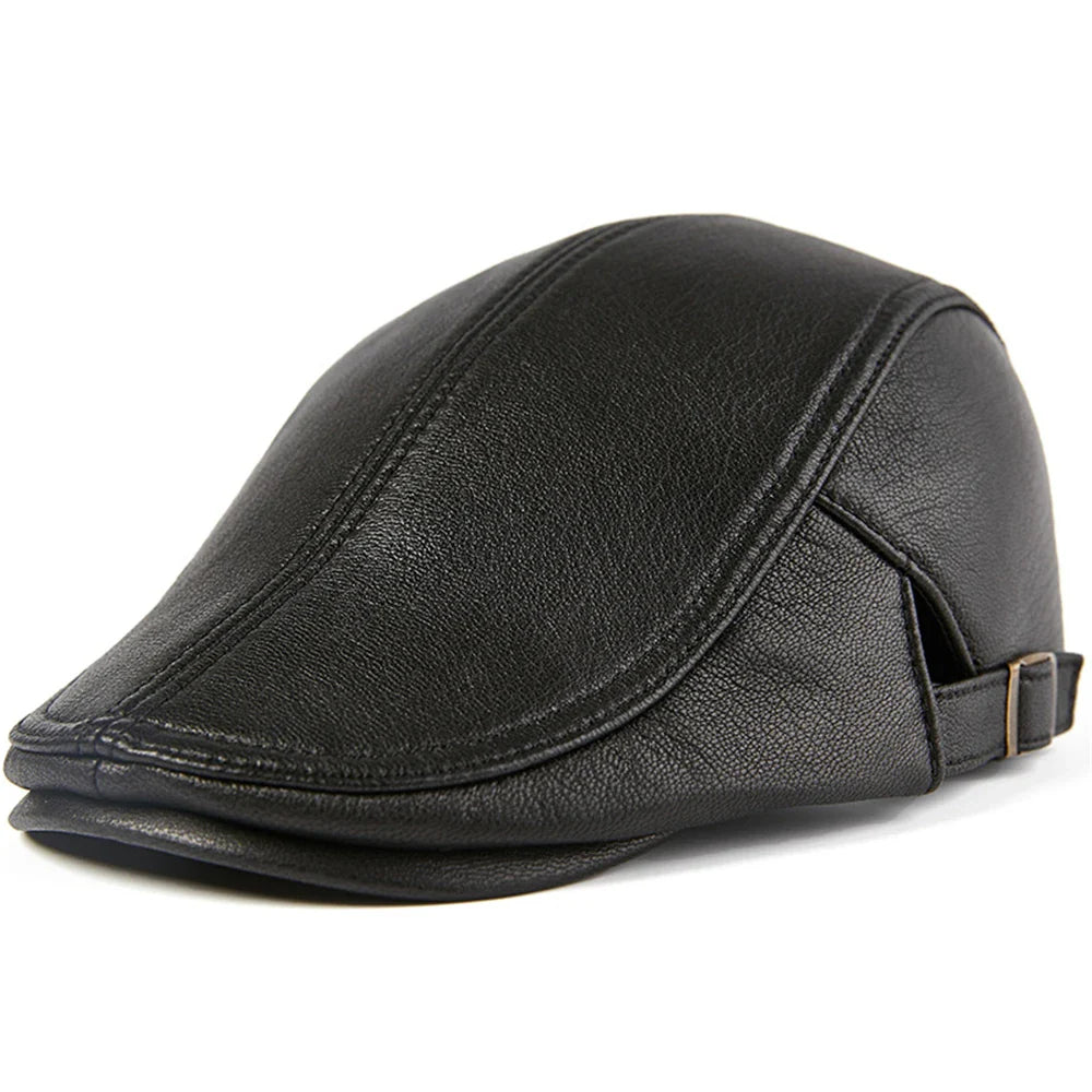 BUTTERMERE Men Beret Hat Real Leather Flat Cap Sheepskin Autumn Winter Male Brown Adjustable High Quality Gatsby Mens Beret Caps