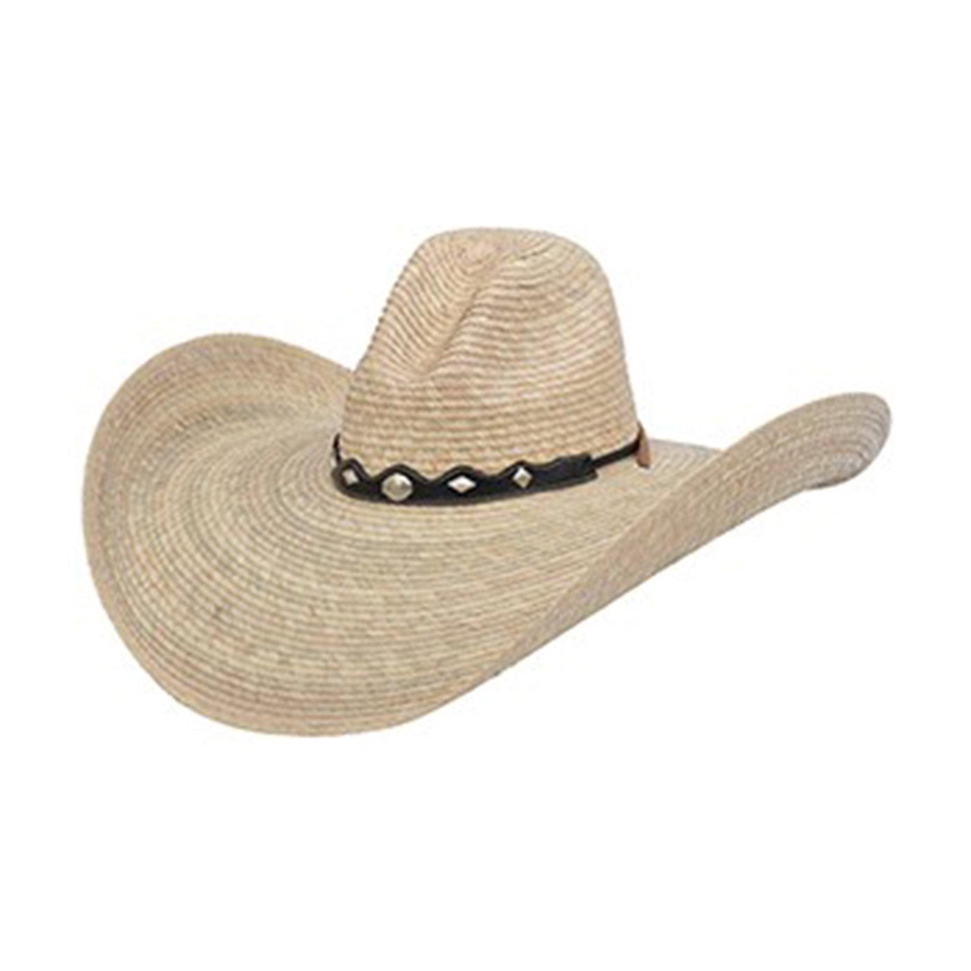 This Old West Texas Quemada Campechana Palm Hat has a Gus Crown with a 7" Brim and an Elastic Sweat Band.