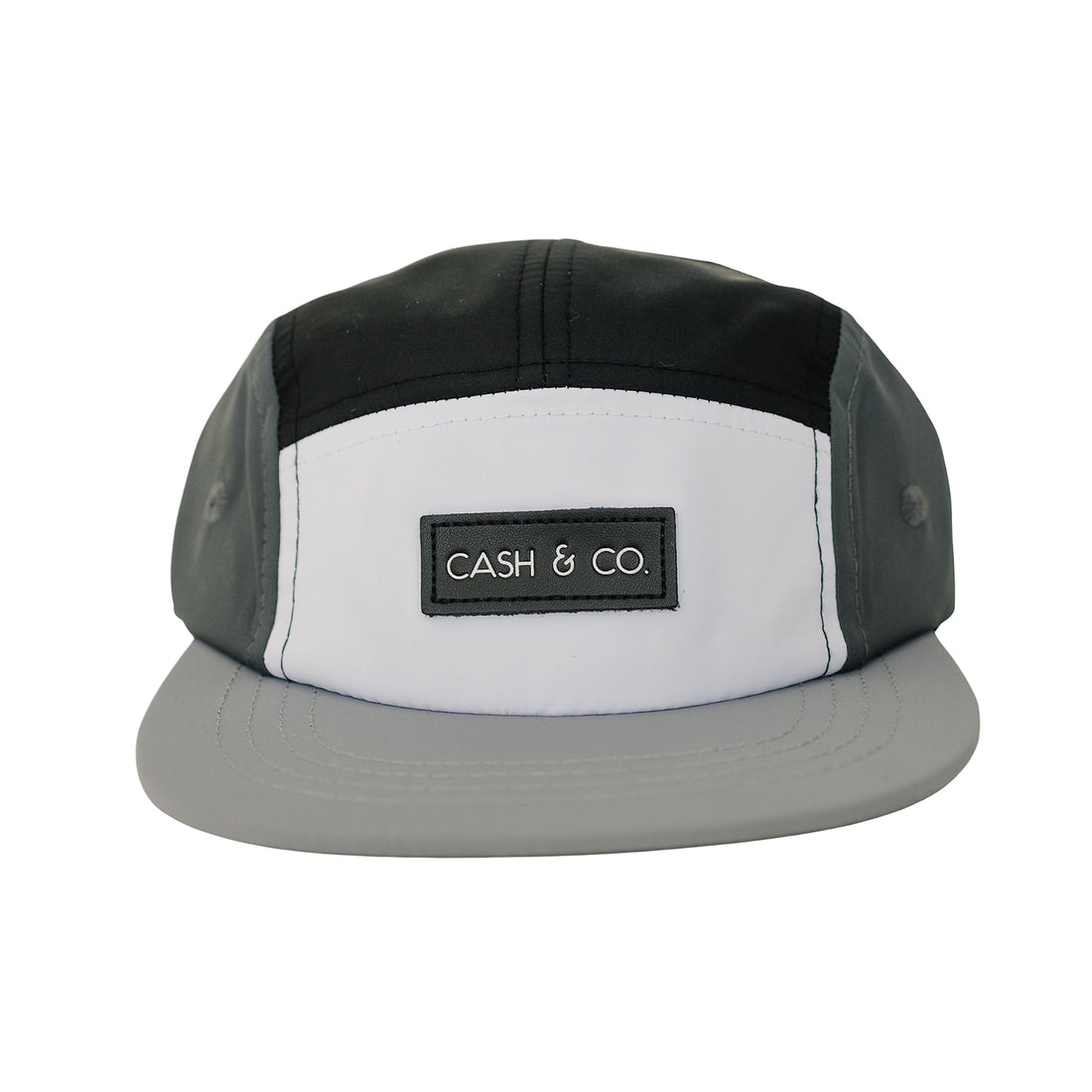 Black, Wolf Grey, Dark Grey and white 5 Panel hat.
