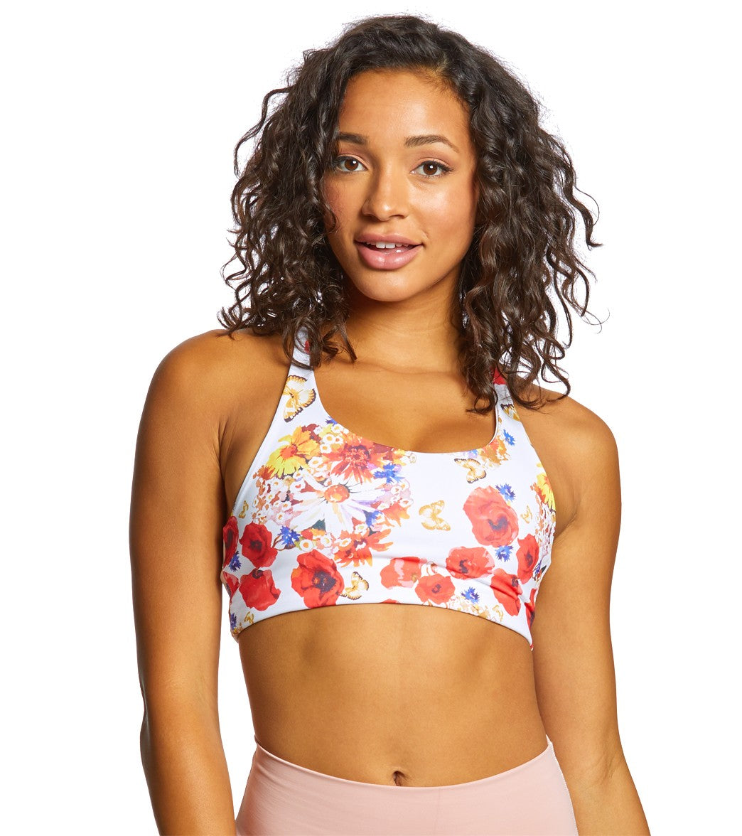 Stay supported throughout class in this DYI Criss Cross Yoga Sports Bra. Made from high compression fabric, this sports bra features thin cross back straps and a floral print thta will upgrade any outfit.