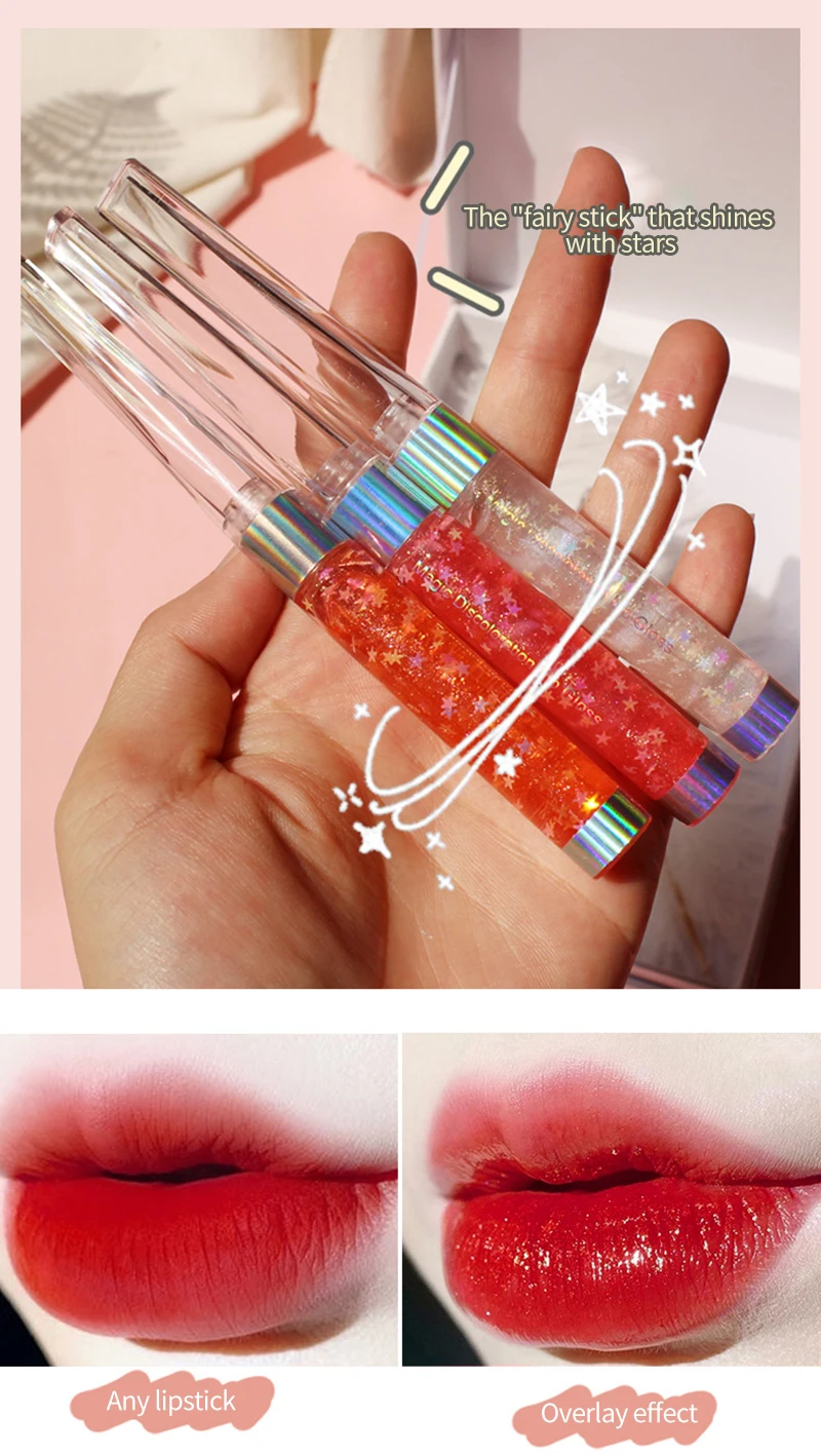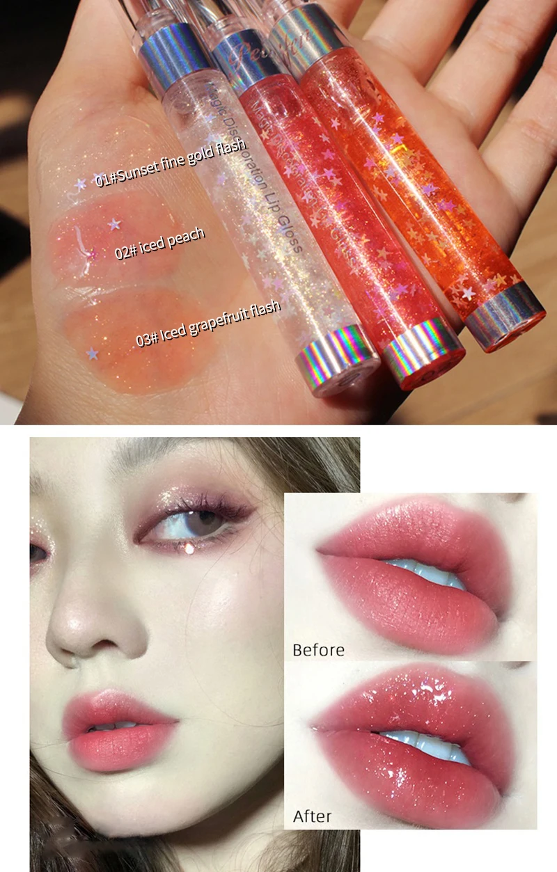 ELECOOL Transparent Jelly Lipgloss Shiny Clear Mirror Moisturize Lip Balm Glitter Liquid Lipstick Lip Oil Lip Tint makeup korean
