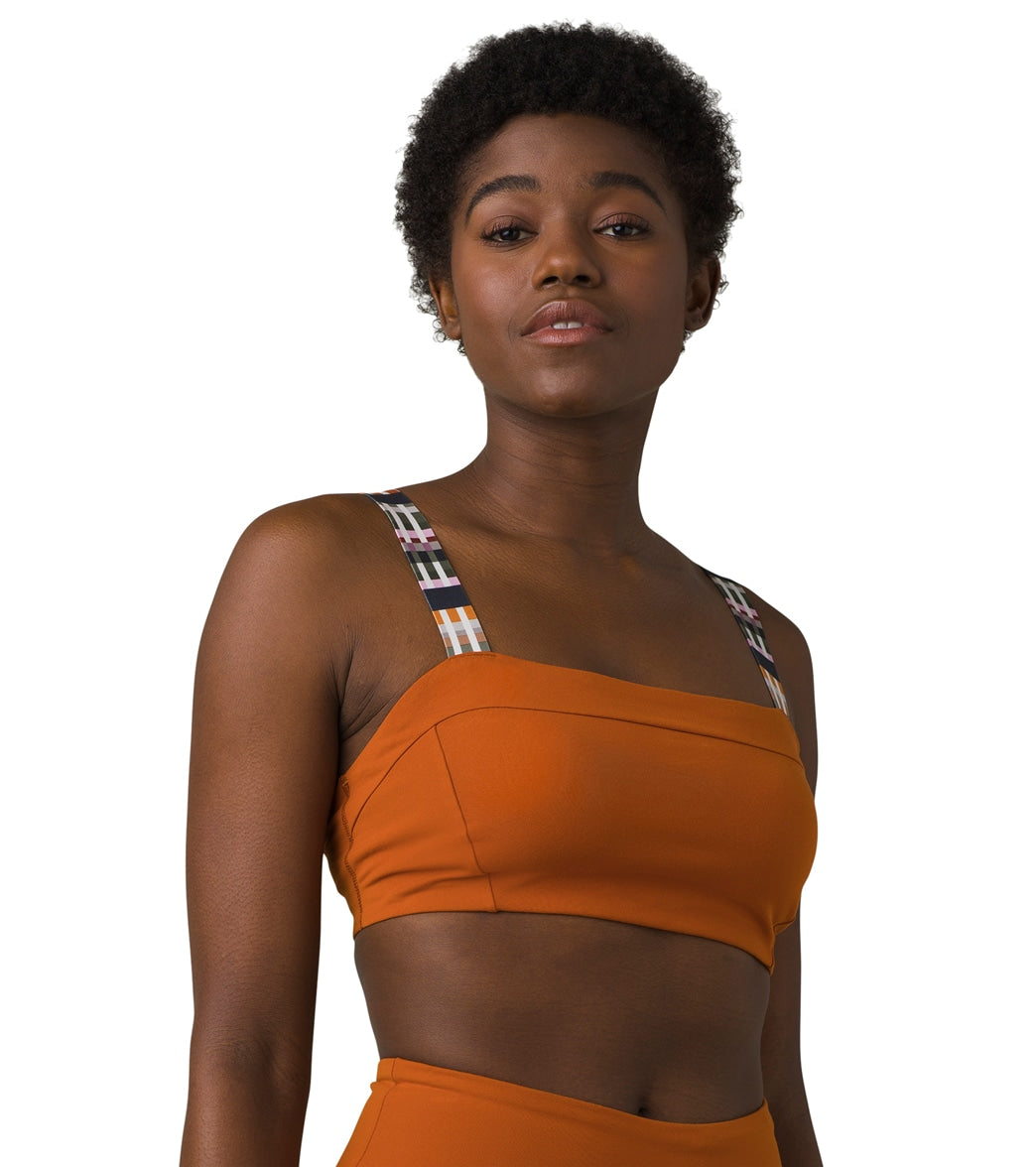 The prAna Moraga Bra offers eye-catching thick straps in a contrast print. We love this bra top, not only for its stylish and supportive design but also because of the brand's ethical production standards.