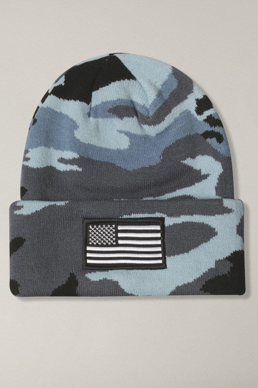 USA Flag Embroidery Patch Cuff Camo Beanie Hat